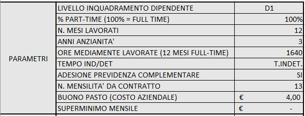 E’ possibile utilizzare la stessa cartella di lavoro per effettuare il calcolo prendendo a riferimento altri contratti collettivi nazionali, in questo caso sarà necessario modificare la tabella di cui all’immagine seguente (foglio parametri):